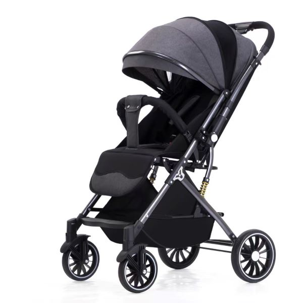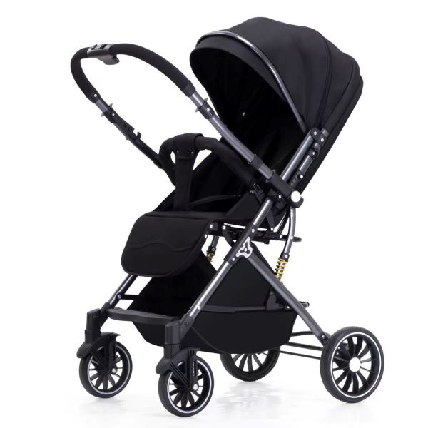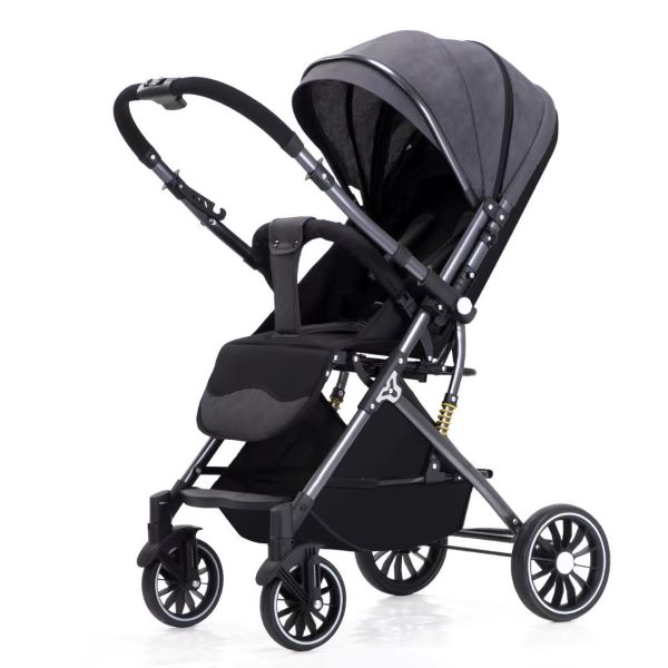 Double-direction push, reversible handle, foldable baby stroller.